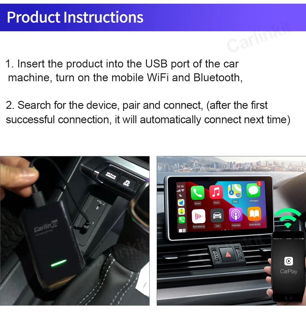 1. Новая версия: Carlinkit Wireless Carplay Activator Mini USB Dongle/пусть оригинальный автомобиль, встроенный в apple carplay, подключен к беспроводной carplay. (Больше моделей автомобилей и лет, пожалуйста, обратитесь к продавцу.) 2. Простота в использовании: не нужно разбирать, подключать и играть без задержек. Мы разрабатываем и производим этот продукт для достижения проводного беспроводного использования. 3. Совместимые устройства-: только поддержка моделей автомобилей с оригинальной CarPlay. Если вы хотите использовать ваш carplay по беспроводной связи, вы можете купить наш продукт. Наслаждайтесь вашим беспроводным автомобилем. 4. Характеристики: он поддерживает кнопки рулевого колеса, управление ручкой, Голосовое управление (операция такая же, как и ваш оригинальный автомобиль). 5. Бесплатное вождение и безопасное вождение: совершать/отвечать на звонки, проверять голосовые сообщения, текстовые сообщения и создавать карты. Слушайте ваши любимые песни с помощью приложений в формате «hands free», «apple music» или «apple music». Продукт поддерживает обновление прошивки.