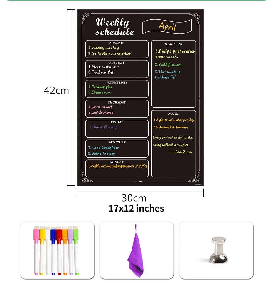 Описание: график работы с детьми, магнитное расписание, список дел Материал: магнитный порошок, резина, HD-печать, ПЭТ-пленка. Особенности: самомагнитный, гибкий, поддержка письма, портативный, прочный. Размеры: 42x30см стираемость: сухое стирание, стойкий яркий и легко очищается. Применение: Положите на поверхность черного металла как холодильник и так далее.