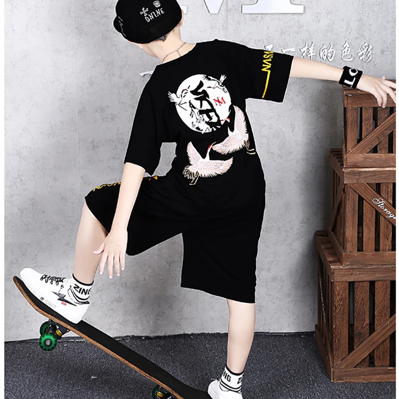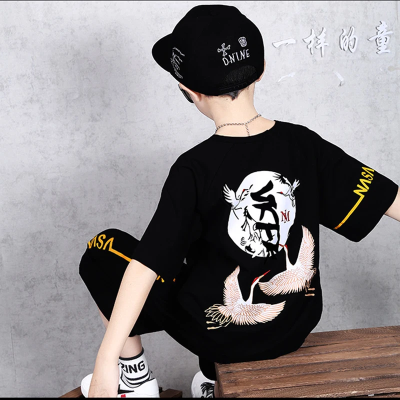 Детский комплект одежды для мальчиков, детский спортивный костюм из двух предметов с китайской культурой для мальчиков, черные летние шорты 2020, свободный комплект с рукавами