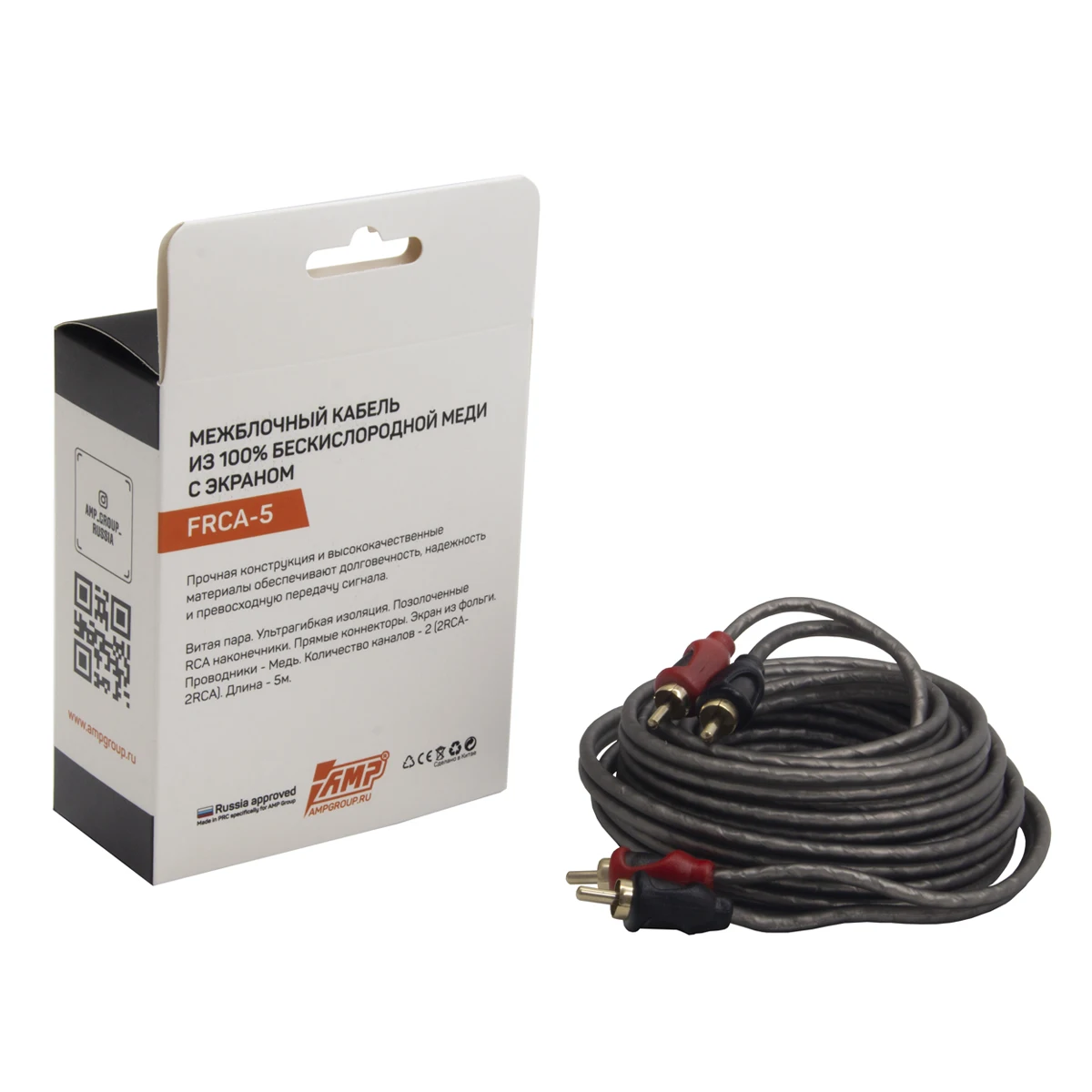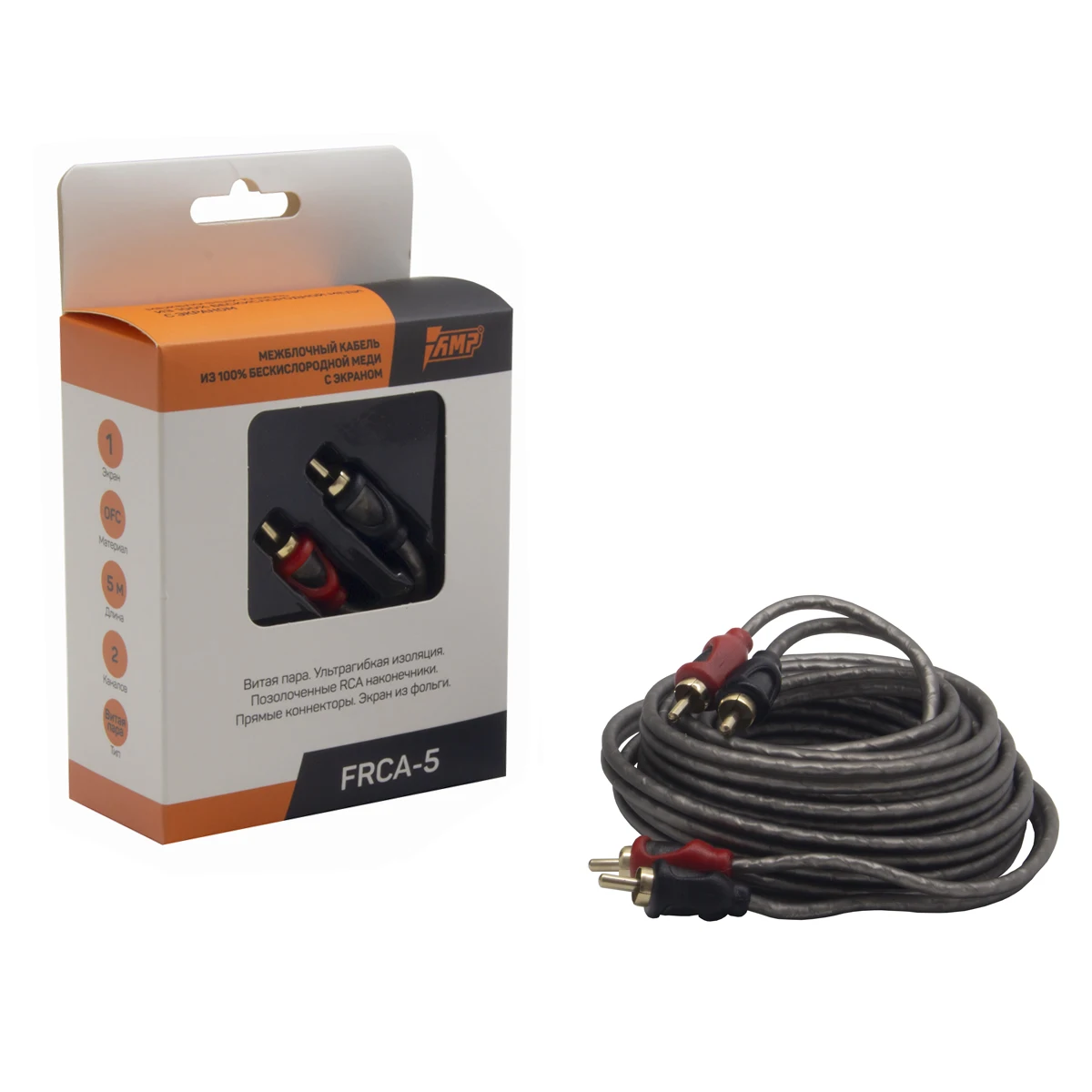 Провод соединительный AMP FRCA-5 Межблочный кабель. Медь OFC. Витая пара. Ультра гибкая изоляция. Позолоченные RCA наконечники. Экран из фольги. Проводник — медь. Количество каналов — 2 (2RCA-2RCA). Прямые коннекторы. Длина 5 метров.