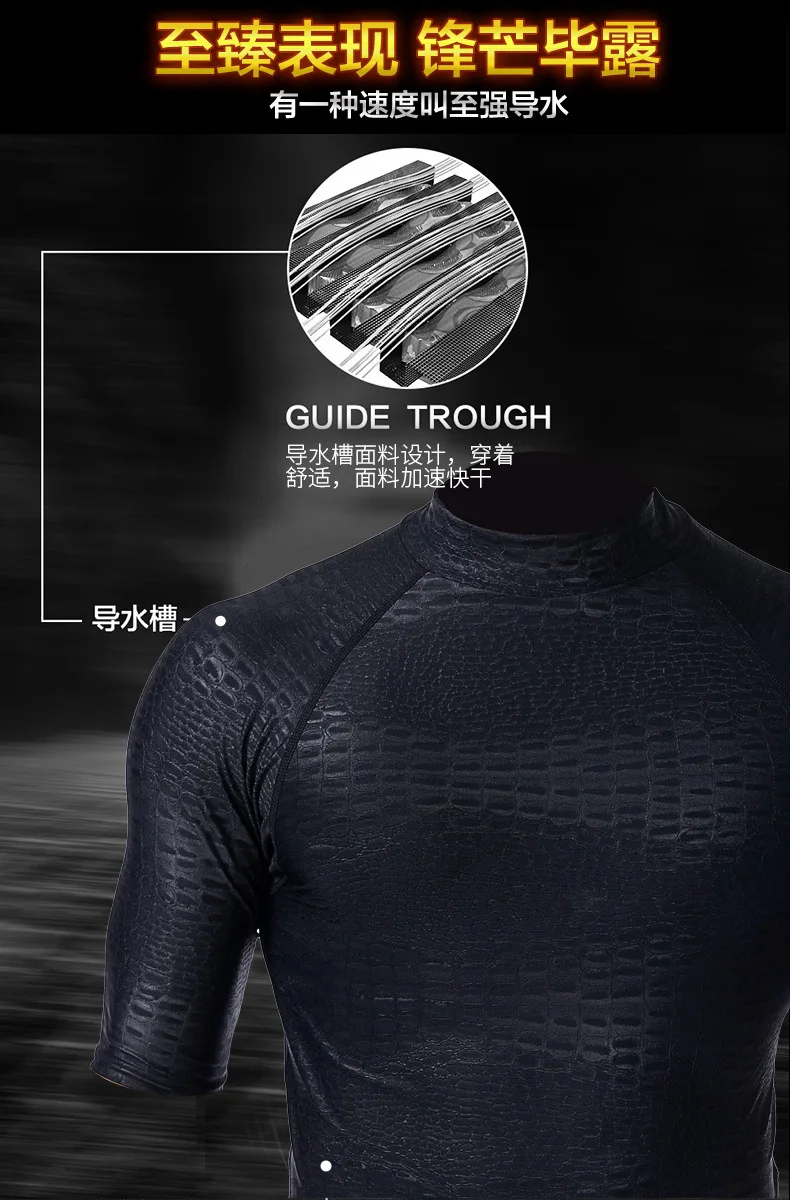 В этом костюме для дайвинга Используется 3D четырехигольная и шестиниточная резка. Американский DuPont 82% нейлон + 18% спандекс удобный, дышащий, быстросохнущий, имеет водонепроницаемое покрытие на поверхности и использует самый передовой процесс тиснения ткани. Он весит всего около 280 г и очень легкий, эта одежда показывает внешний вид sharkskin и имеет сильную функцию подачи воды. Идеальное снаряжение для дайвинга и серфинга для пляжного отдыха