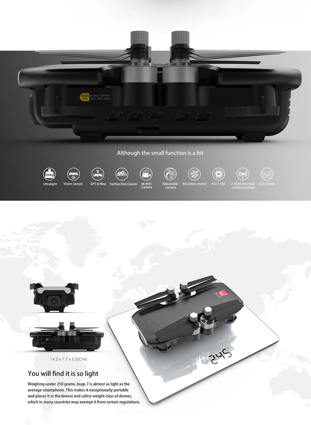 ● Функции: 360 градусов конверт, автоматическое отслеживание, камера, вперед/назад, gps отслеживание местоположения, автовозврат с одним ключом, оптическое позиционирование потока, точка заинтересованности, боковой полет, поворот, поворот влево/вправо, вверх/вниз, полет в Waypoint (iOS)