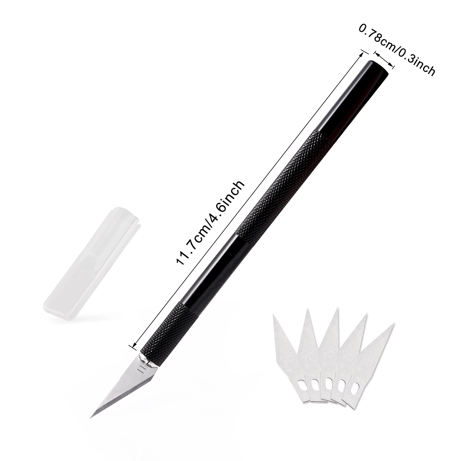 Название: нож для резки пленки Материал: Алюминий Размеры: 11,7*0,78 см Особенности: Алюминиевая ручка, нескользящий дизайн Регулируемая головка патрона, фиксирует лезвия прочно Полупрозрачный Защитный колпачок для ножей защищает пальцы от боли Многофункциональное использование, маркировка моделей, резка ковриков, травление, резьба, скульптура и т. д. Это нож для рукоделия, отлично подходит для изготовления моделей, резки ковриков, травления, резьбы, скульптуры, зачистки и других видов применения Он предназначен для начинающих и любителей творчества Посылка включает в себя: 1 шт. х нож для резьбы + 5 лезвий
