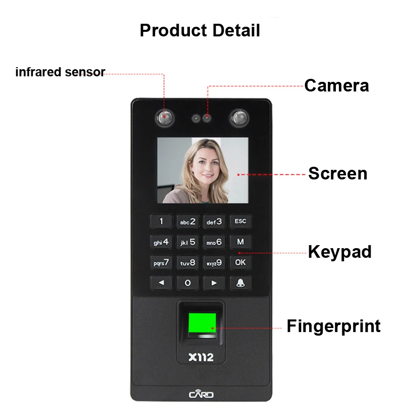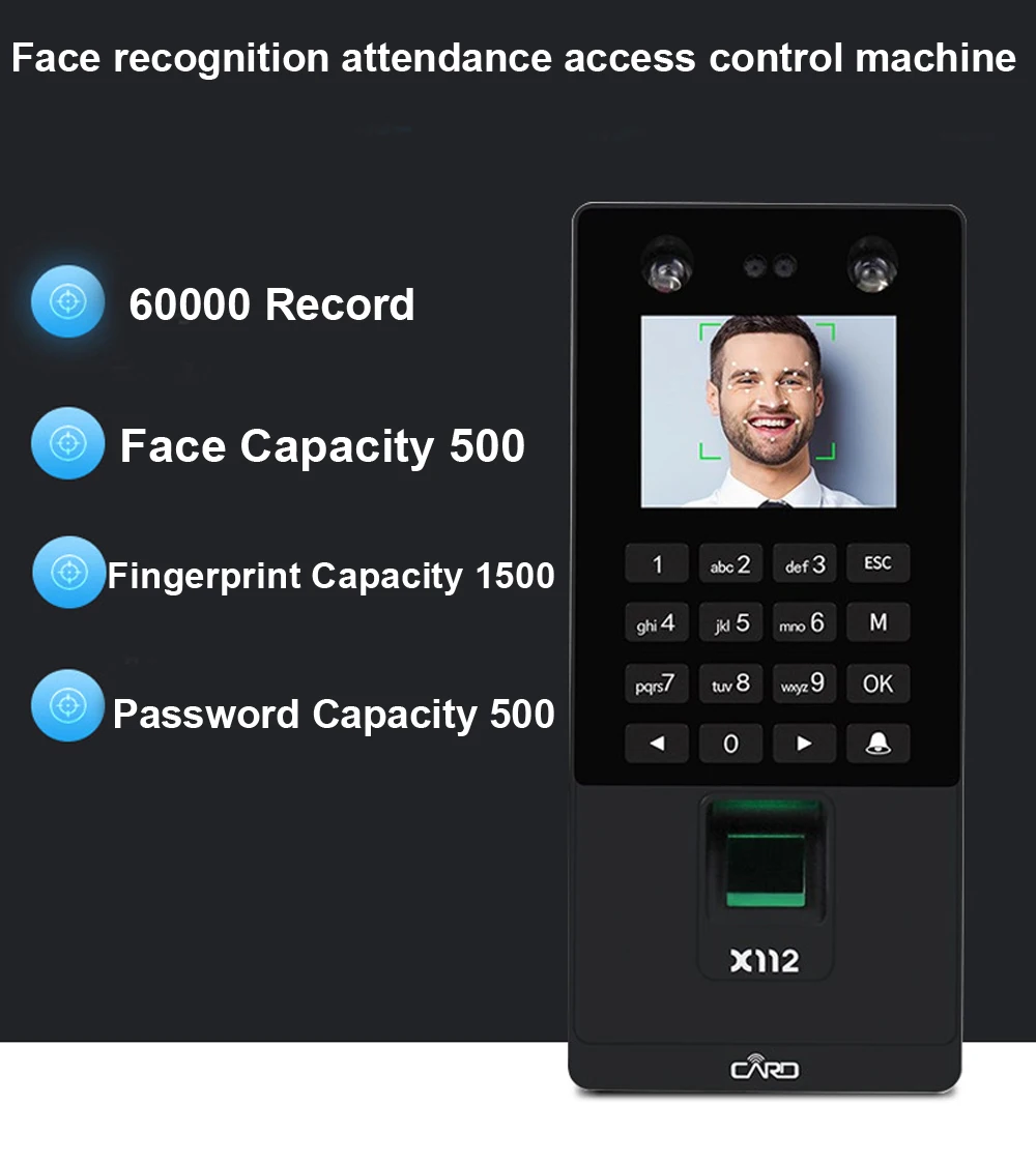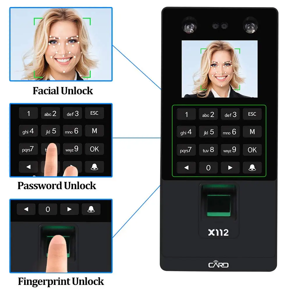 2,8 дюймов USB с функцией распознавания лиц система контроля допуска к двери отпечатков пальцев уход за кожей лица времени по отпечаткам пальцев RFID считыватель клавиатуры ремень TCP/IP X112-A: не поддерживает TCP/IP, не поддерживает функцию RFID карты X112-B: Поддержка TCP/IP, не поддерживает функцию RFID карты X112-C: не поддерживает TCP/IP, поддерживает функцию RFID карты X112-D: Поддержка TCP/IP, поддержка функции RFID карты