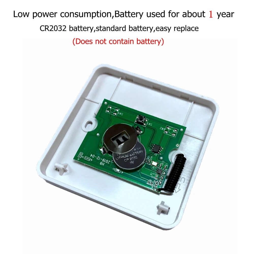 1. Кнопка поддерживает до 8 шт., а приемник поддерживает до 100 шт. 2. Если несколько кнопок соединены с одним или несколькими приемниками в одной системе, каждая кнопка может быть установлена на другой мелодии звонка. 3. Функция отключения памяти: Включите питание снова после выключения питания, не нужно повторно регулировать и блокировать мелодию звонка. 4. Передатчик не имеет винтового патрона, он может быть водонепроницаемым и пыленепроницаемым без резинового кольца. 5. Передатчик использует щелочную батарею CR2032 (аккумулятор в комплект не входит). 6. Напряжение приемника: 110-220 В. 7. Приемник доступен в различных вилках, штепсельных вилках США/ЕС/Великобритании и адаптерах Австралии, подходит для большинства стран. 8. Расстояние приема: 300 метров на открытой местности. 9. На беспроводной сигнал будут влиять препятствия. Чем больше препятствий, тем серьезнее потеря сигнала. 10. Приемник имеет 5 уровней (можно отключить звук) 0-110 дБ, 60 музыки на выбор. 11. Размер: передатчик 86x86x10 мм, приемник 92x62x32мм. Примечание: Кнопка не может быть размещена на железной двери, потому что это будет мешать сигналу.