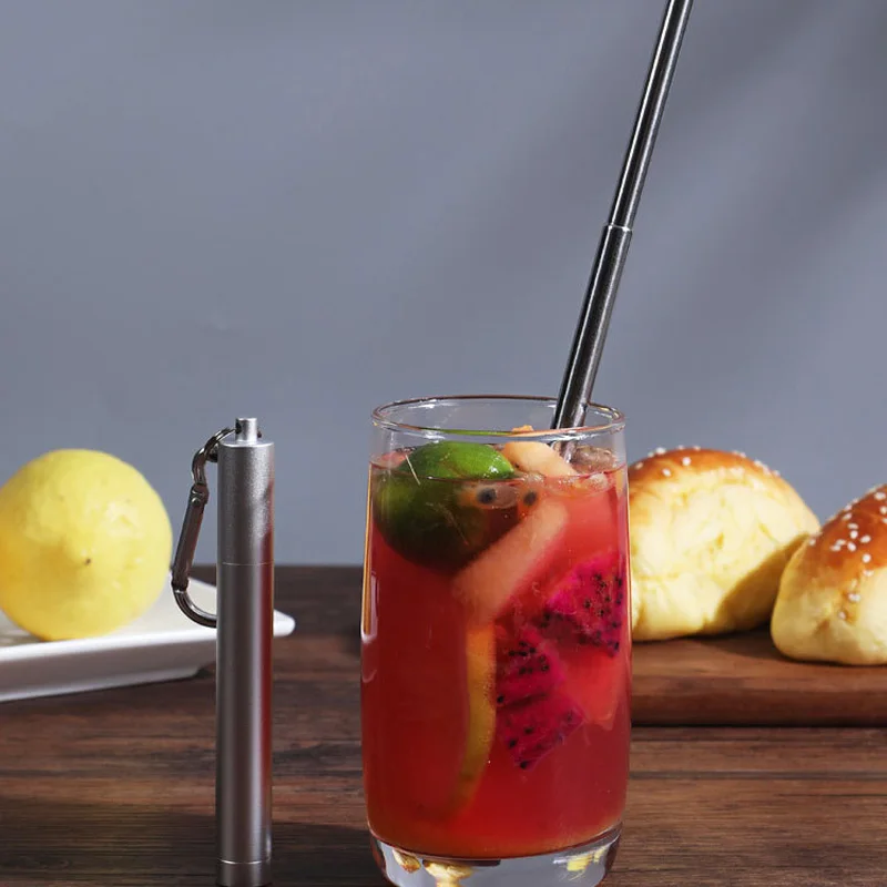 Этот товар представляет собой соломинку из нержавеющей стали, которая складывается с чистящей щеткой в небольшой чехол, который может носить с брелком. Изготовленные из высококачественной нержавеющей стали, эти безопасные для посудомоечной машины, многоразовые, экологичные соломинки прослужат всю жизнь. Идеально подходит для питья горячих/холодных напитков, пузырчатого чая, смузи, Замороженных Напитков, толстых коктейлей, кофе, чая со льдом и т. д.