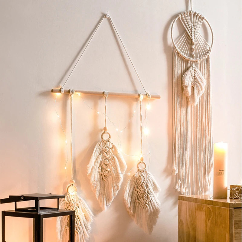 Украшения для дома в стиле бохо с листьями, гобелены, деревянные украшения, ручная работа, макраме, узел, гобелен, домашний декор, настенные украшения, аксессуары