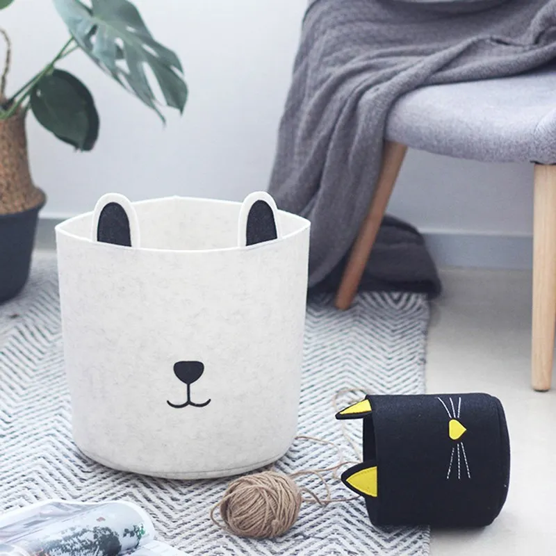 Nordic Cartoon Dog Felt Storage Bucket Storage Basket Children's Toy Storage Box Dirty Clothes Storage Bag Bucket