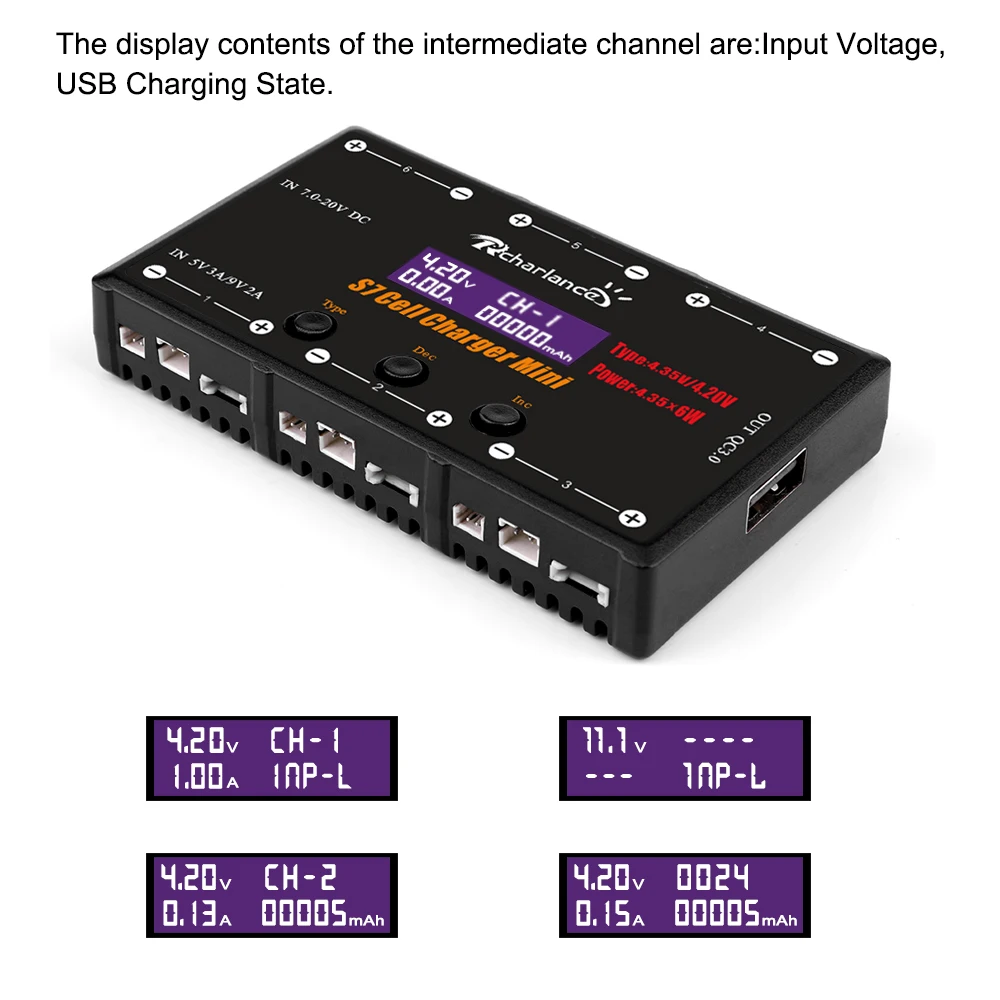 6-канальный 1S LiPo / LiHV зарядное устройство 4,35 Вт/MCX Mcpx MOLEX порт QC 3,0 type-C XT60 2-4S LiPo DC вход для крошечного Whoop FPV