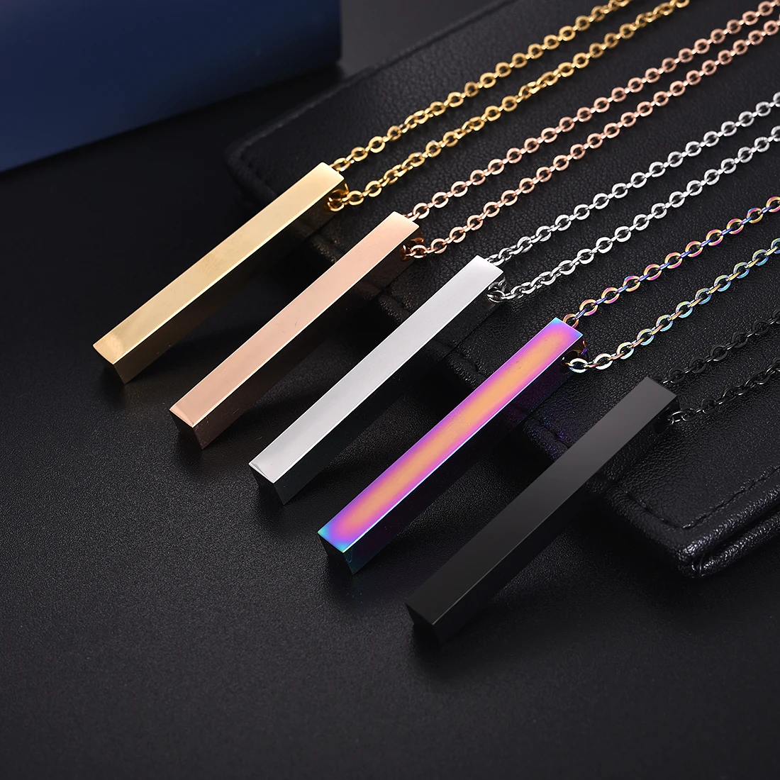 Индивидуальное ожерелье с ручной штамповкой или гравировкой, черное, фиолетовое, серебряное и розовое золото