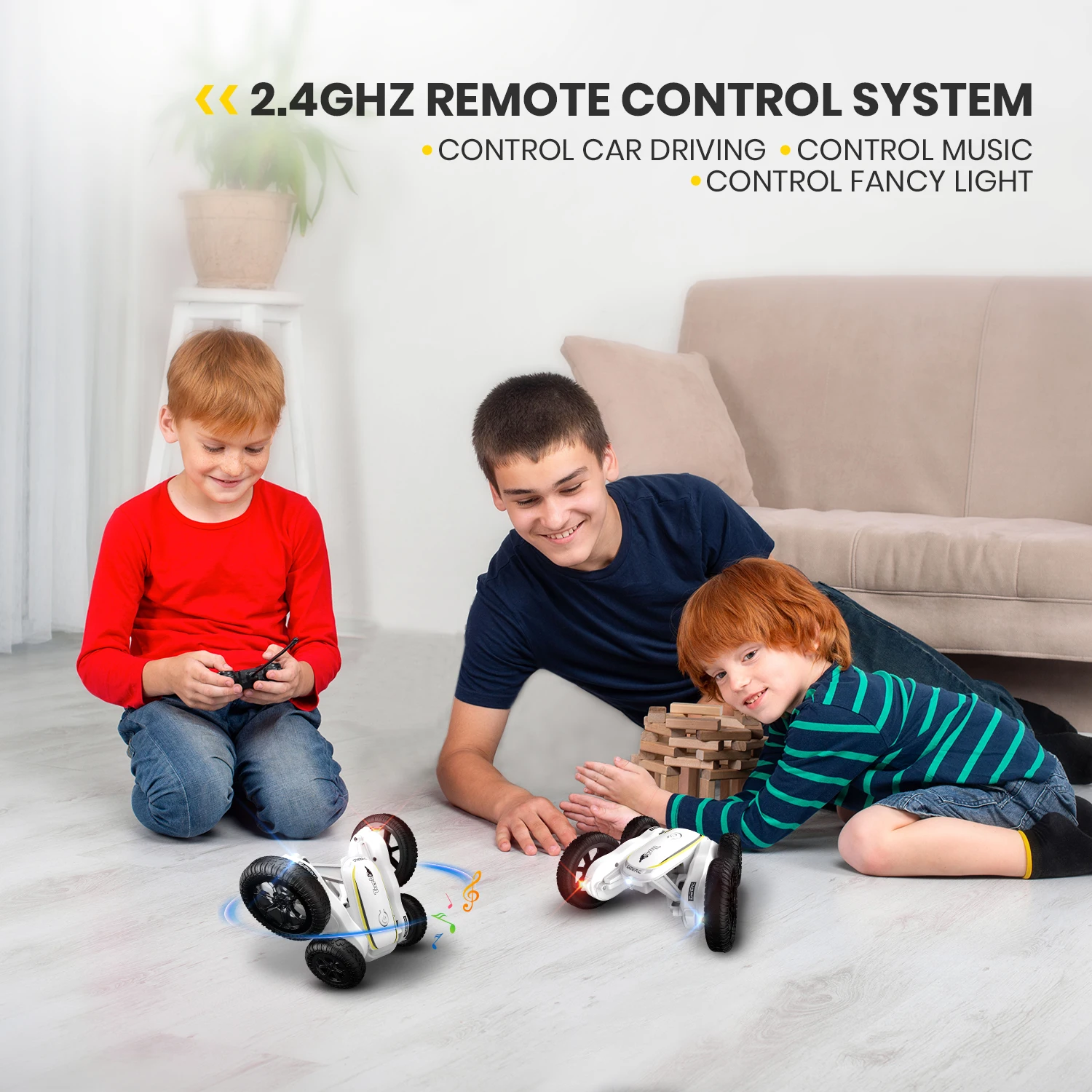 Цвет: белый управляющее устройство: 4WD частота: 2,4 ГГц время работы в режиме воспроизведения: 2*25 минут (зависит от игры операций) Управление расстояние: около 40 м (без помех и закупорки) Время зарядки: один Батарея около 2 часов автомобиля Батарея: 3,7 V/500 мА/ч, Батарея (все указанные аккумуляторы входят в комплект поставки) Пульт дистанционного управления Управление; Батарея: 2*1,5 V AA Батарея (не входит в комплект)