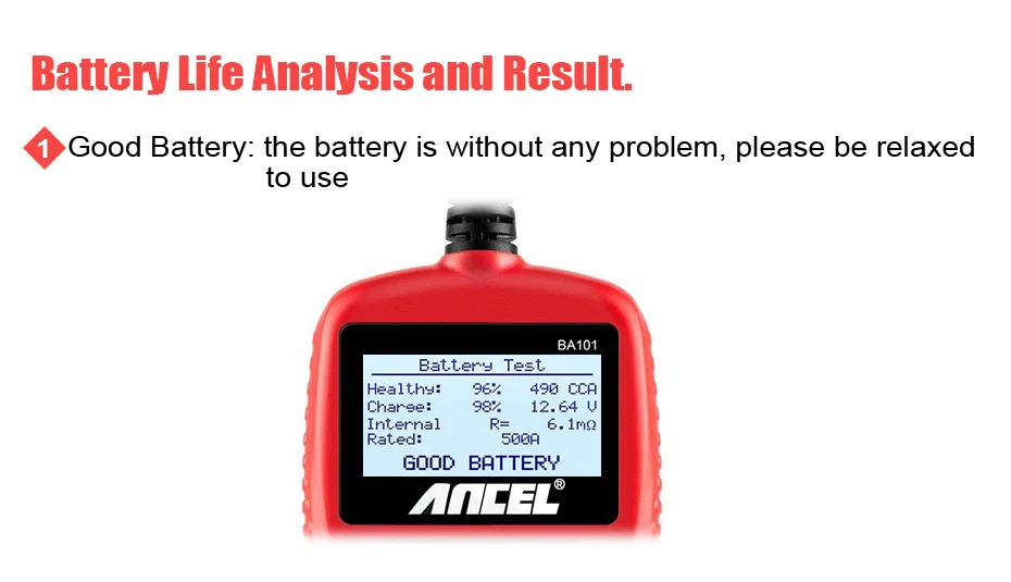 Ancel BA101 12V 100-2000CCA 220AH тест на автомобильную батарею OBD 2 тест на Напряжение здоровья анализатор батареи Автомобильный диагностический инструмент Автоматическая нагрузка