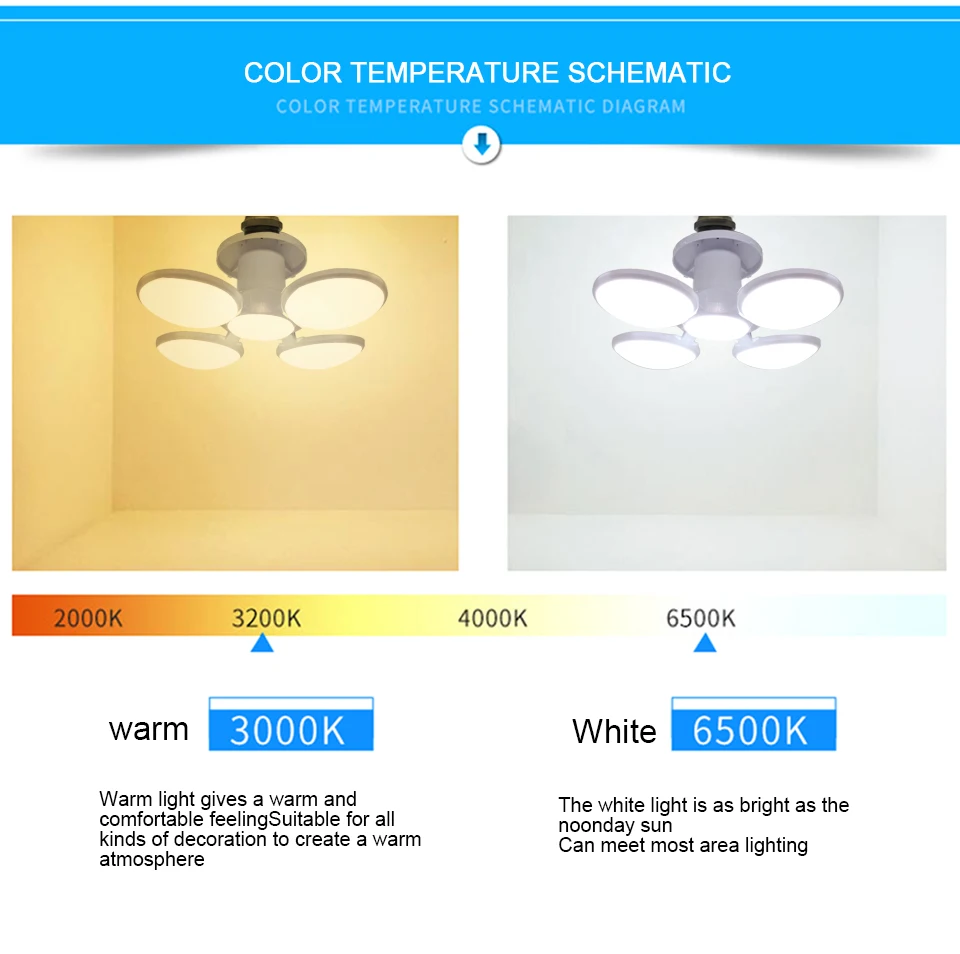 Super Bright LED Football Lamp Bulb E27 40W AC 110V 220V No Flicker UFO Lamp Ampoule Lampada LED Light Folding Bulb For Home