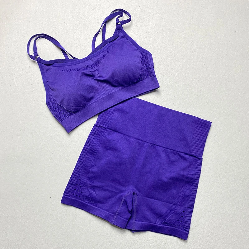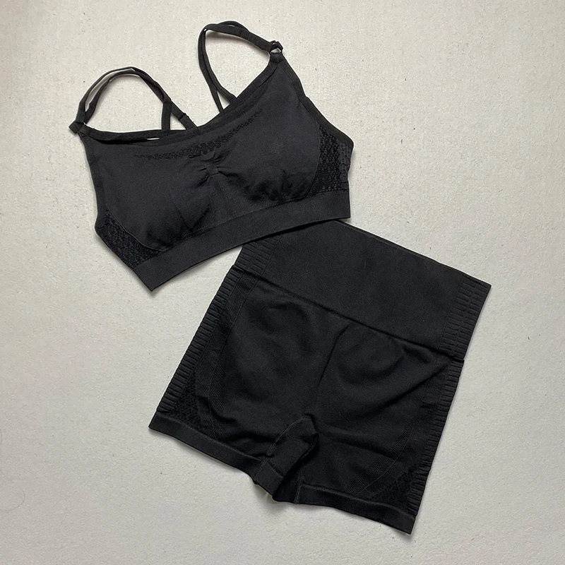 Комплект из 2 предметов для тренировок и йоги, женский спортивный бюстгальтер на бретельках и энергетические бесшовные шорты, комплект одежды для спортзала, одежда для активного отдыха, Женский комплект для бега