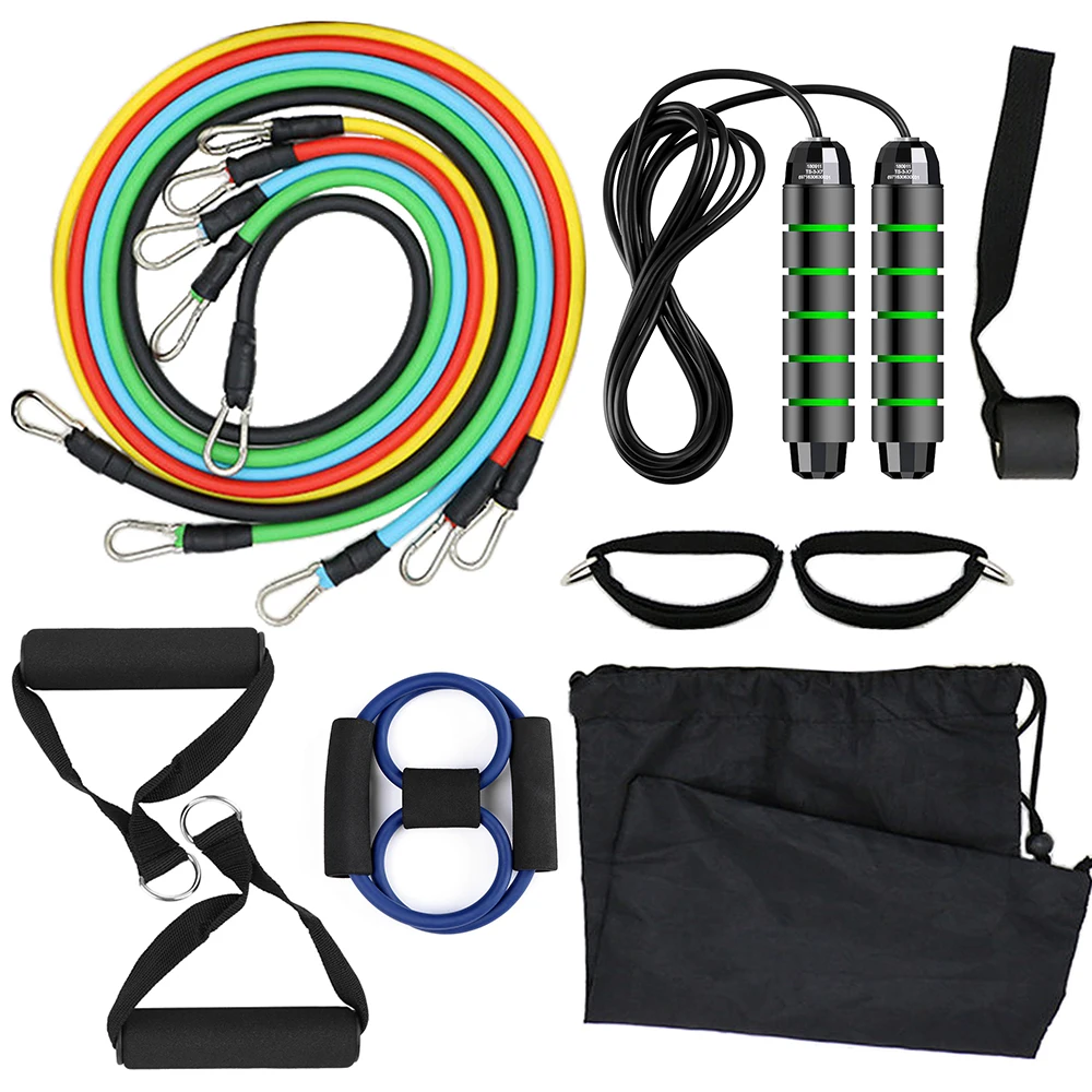 Полный комплект: набор из 11 фитнес-ремней состоит из 5 трубки ленты, 2 мягких ручки, 1 дверного анкера, 2 ремня на лодыжку, 1 скакалка, 8 форм ремня сопротивления, 1 сумка для переноски. С этим комплектом для тренировок вы никогда не пропустите ни одного шанса испытать различные тренировочные трудности для наращивания силы и тонизации мышц.