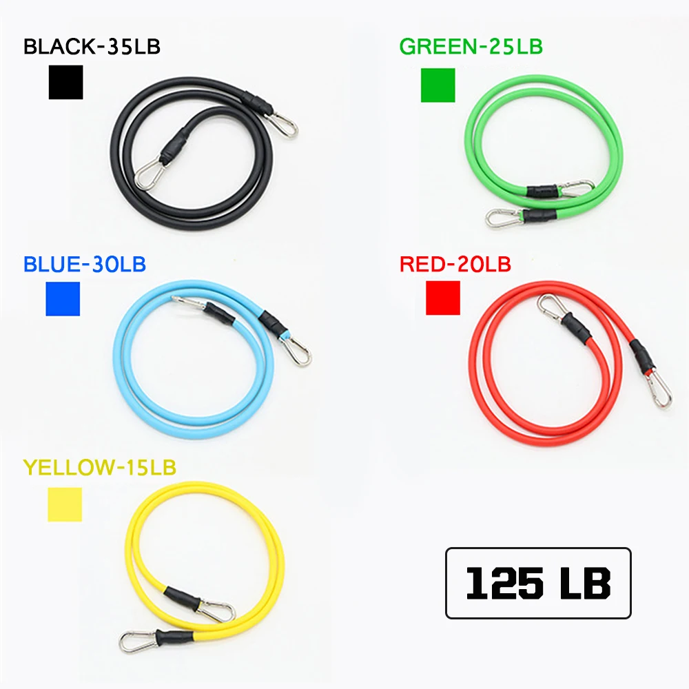 Сопротивление: желтый-15 фунтов; Красный-20 фунтов; Зеленый-25 фунтов; Синий-30 фунтов; Черный-35 фунтов