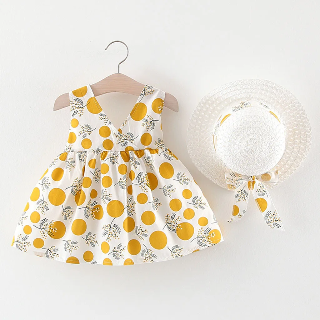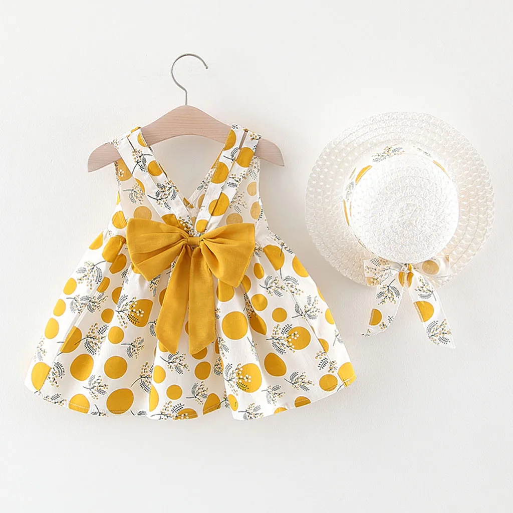 Платья принцессы без рукавов в горошек с бантом на бретельках для маленьких девочек шляпа