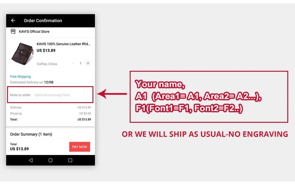 Уважаемый клиент. Если вам нужна гравировка. Пожалуйста, оставьте сообщение и добавьте примечание при размещении заказа. Если вы не добавили Примечание. Мы вышлем кошелек без гравировки. Спасибо