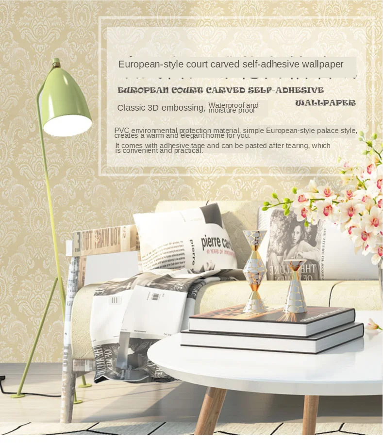 3. Аккуратно приклейте вырезанные обои сверху вниз и постепенно удалите базовую бумагу на спине. В то же время, удаляя базовую бумагу, используйте мягкую ткань или полотенце, чтобы аккуратно сгладить две стороны от центра обоев, разряжая все пузырьки, чтобы обеспечить гладкий эффект.