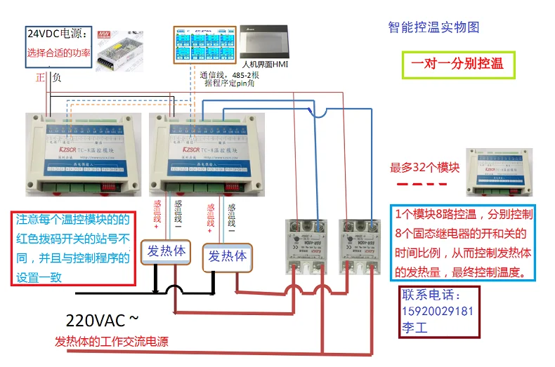 3. Через протокол MODBUS-RTU, его можно использовать в комбинации с PLC или сенсорным экраном. Осуществляем централизованное и интеллектуальное управление многоканальной температурой. Он имеет хороший контроль температуры, более простое и умное использование.