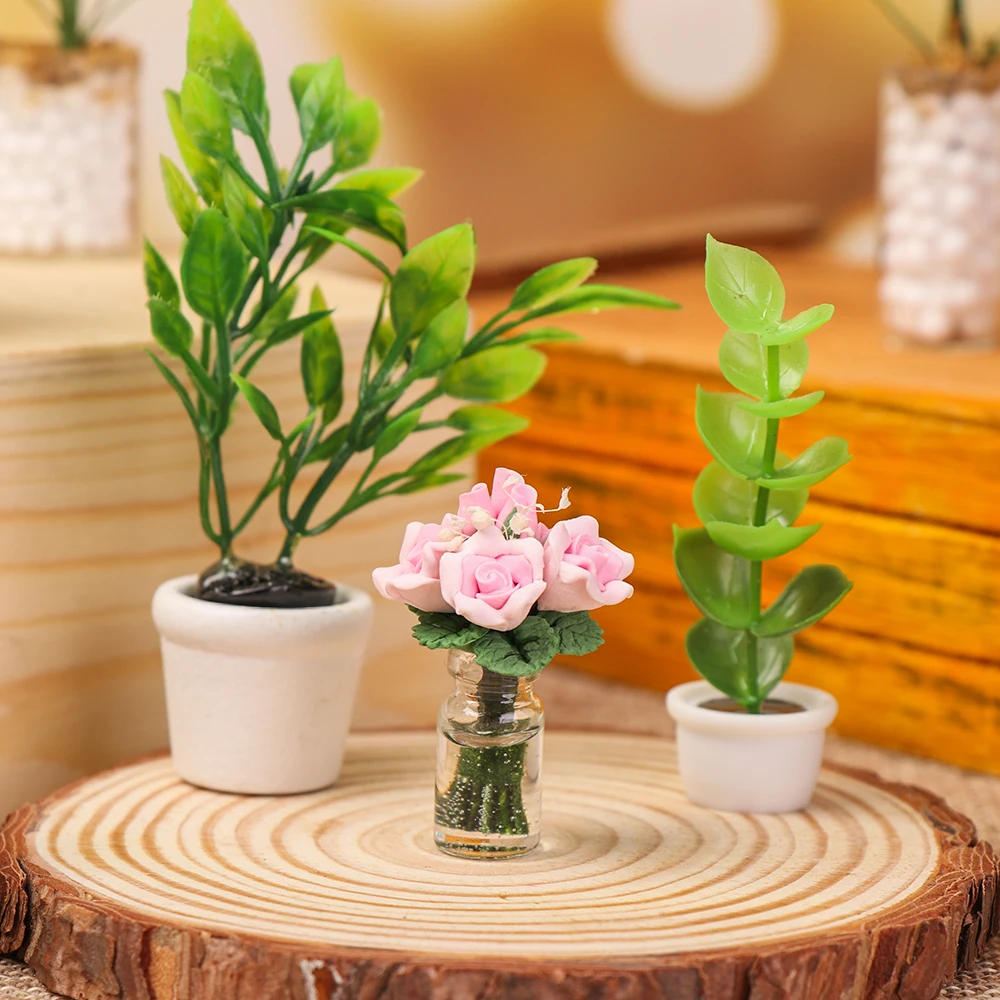 Зеленое мини дерево в горшке для 1:12 кукольный домик миниатюрное зеленое растение в горшке кукольный дом мебель домашний декор имитация растения в горшке