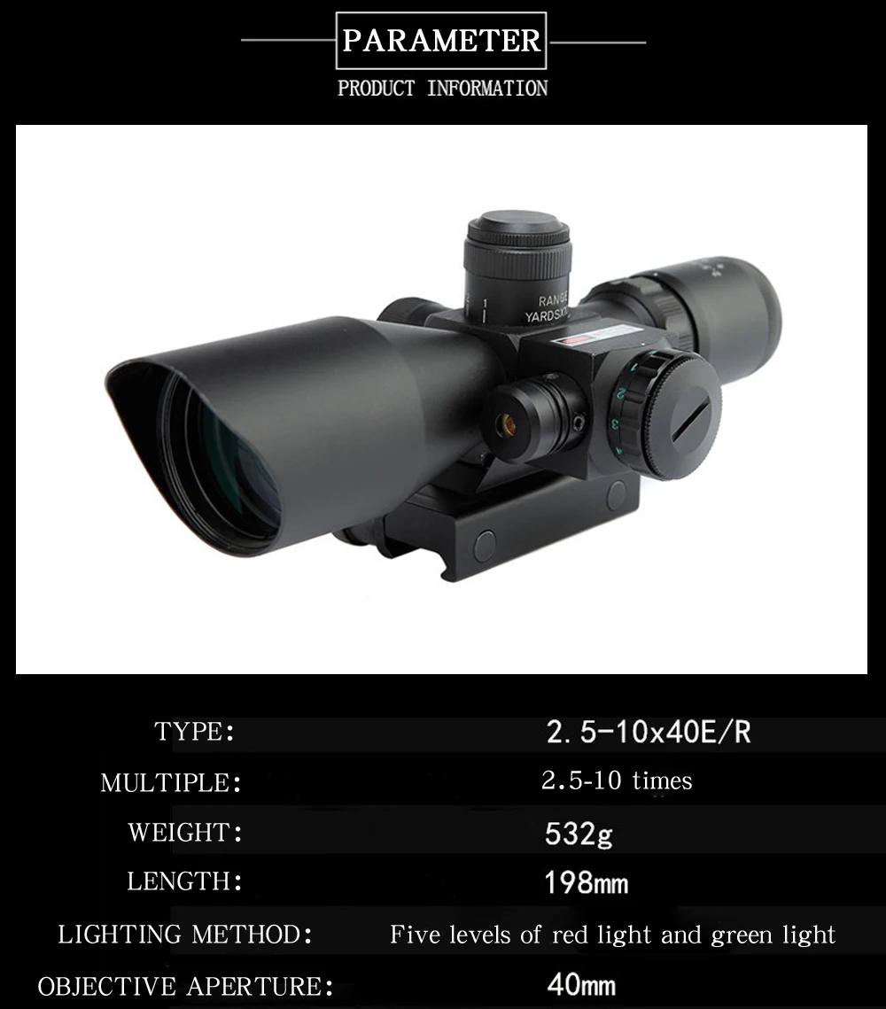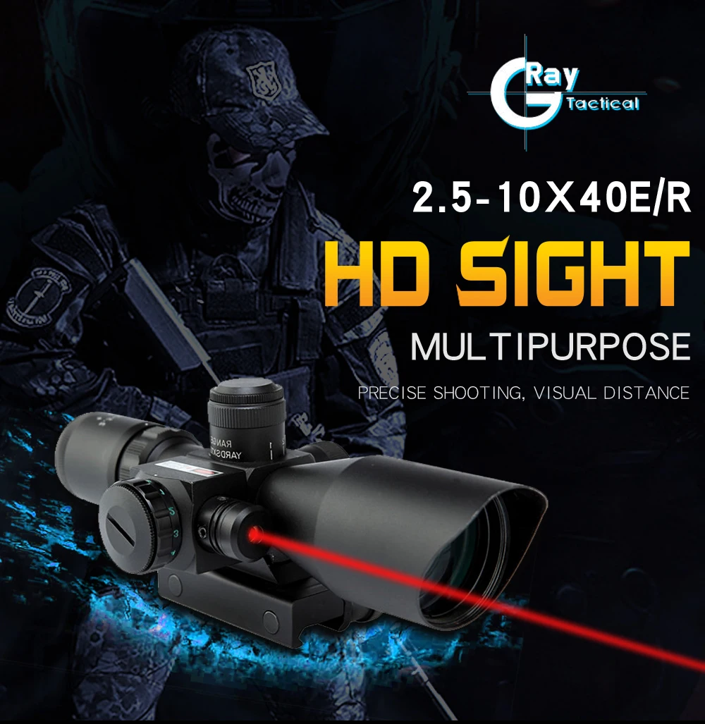 2,5-10x40ER тактический оптический прицел для охотничьей винтовки, прицел для прицела, зеркало, снайпер, страйкбол, воздушные пистолеты, аксессуары, мощный лазер