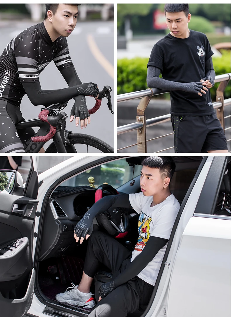 Название: RROCKBROS Открытый Спорт Велоспорт велосипед солнцезащитный рукав перчатки Бренд: Rockbros Размер: S,M,L Материал: вискозная нить Цвет: черный, серый