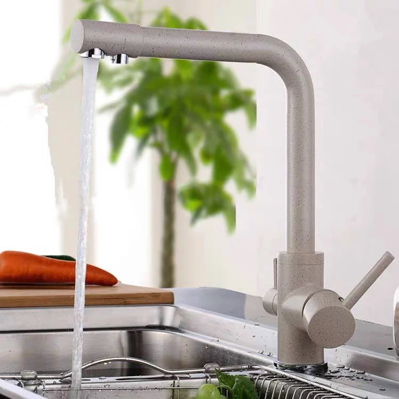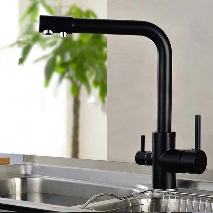 Описание товара Функция: кран для кухонной раковины и функция очистки воды Материал: твердая латунь; Отделка: черный/хром/бежевый/матовая никелевая отделка Количество ручек: 2 Специальные Особенности; Тихий близко, легко установить