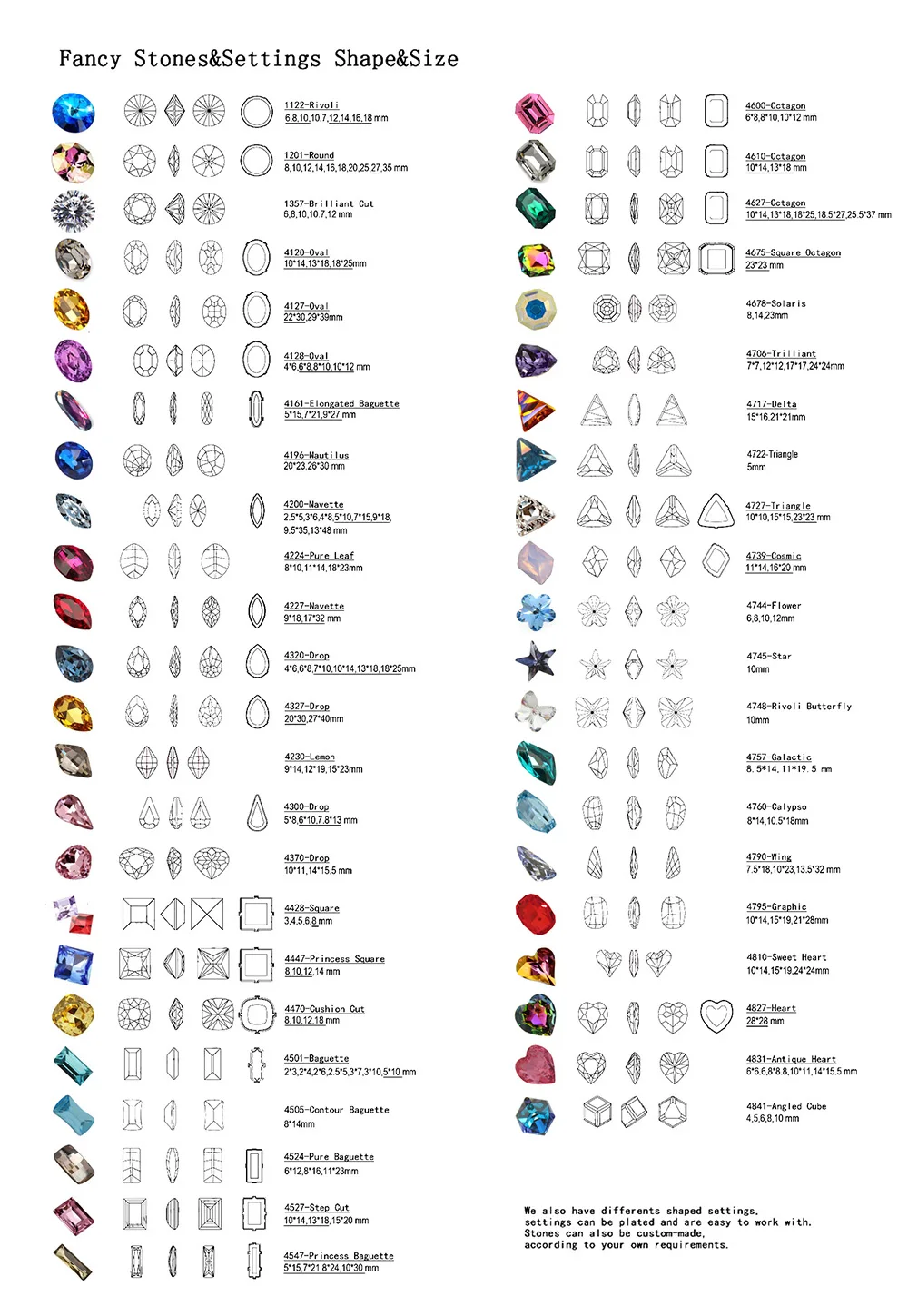 Необычные стразы из бусин предлагаются в различных формах, начиная от классических нарезов с драгоценными камнями до прогрессивных трендовых разрезов. Они поставляются в большом ассортименте различных размеров и цветов. Настройки-это непокрытые латунные компоненты, каждый из которых специально разработан для причудливых камней, которые защищают кристалл и позволяют множество возможностей применения. Они включают, но не ограничиваются шитьем, пайкой и склеиванием. Мы можем прислать его, чтобы показать очарование продукта. Например, мы можем использовать их для изготовления ювелирных изделий, украшения для многих случаев... Вы также можете использовать инновации в соответствии с вашими предпочтениями Артикул: роскошным камнем Цвет: Кристальные разноцветые Форма: круглой бриллиантовой Количество: 10 мм 15 шт., 12 мм 1 2 шт., 14 мм 8 шт., 16 мм 8 шт., 27 мм 2 шт., 35 мм 1 шт. Материал: с украшением в виде кристаллов Стекло Использование: платье, сумки, обувь... Доставка: UPS ,DHL ,FedEx ,EMS...