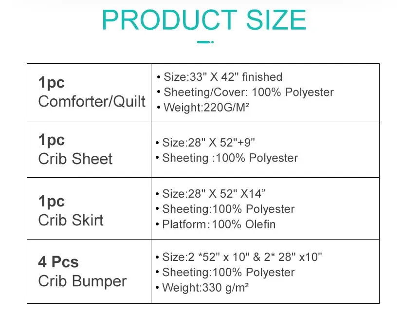 Применение: подходит для всех стандартных детских кроваток во всех странах, 132 см * 72 см, 120 см * 65 см и т. д.