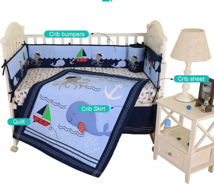 Наименование: Комплект постельного белья для малышей с изображением Кита; Комплект из 4 предметов; Хлопковая детская кроватка; Постельное белье; Одеяло