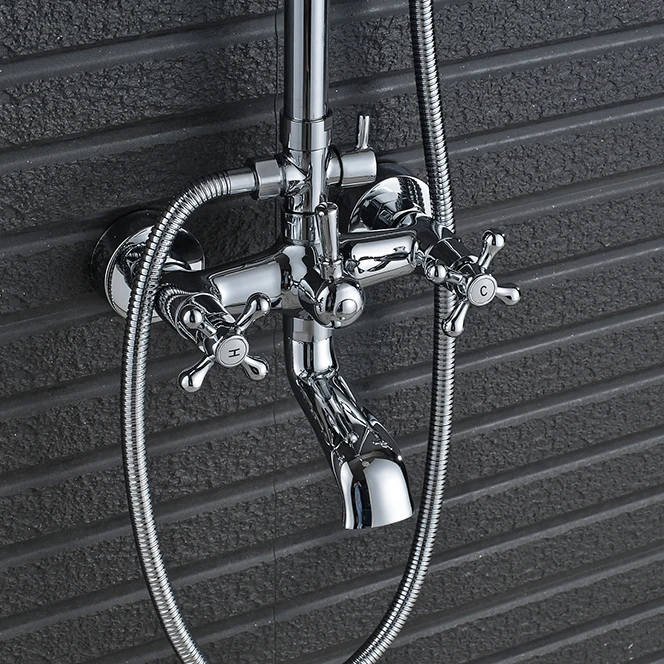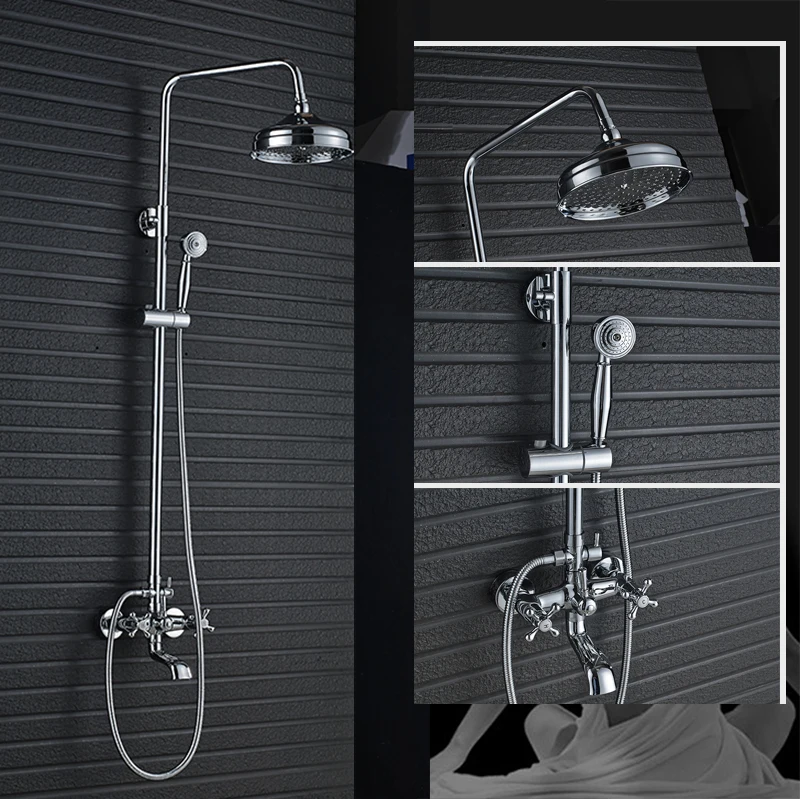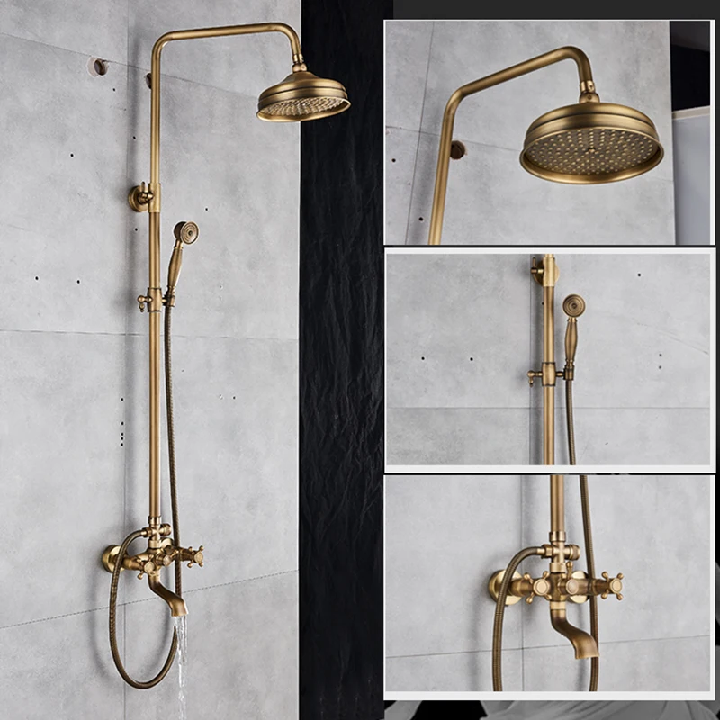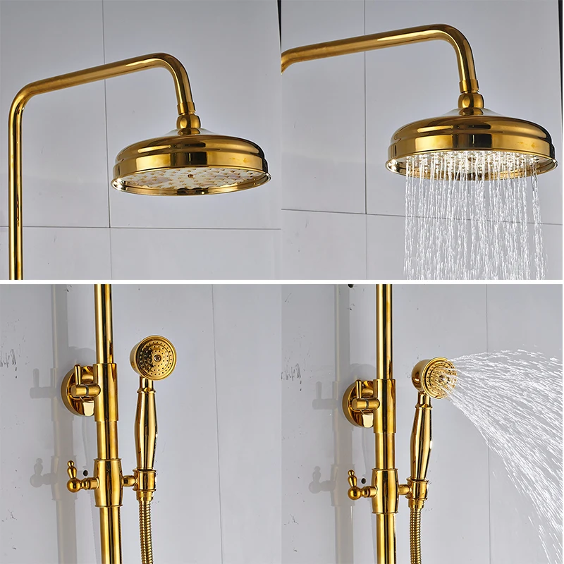SHBSHAIMY Luxury Gold Wall Mounted Bathroom Shower Set Rainfall Shower Faucet Dual Holder Cold Hot Shower Mixer With Silde Bar