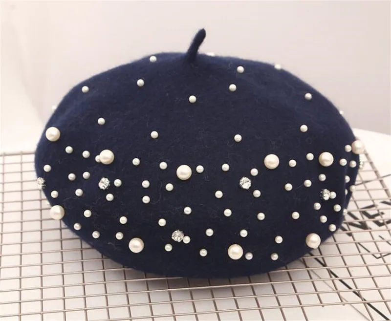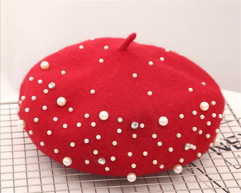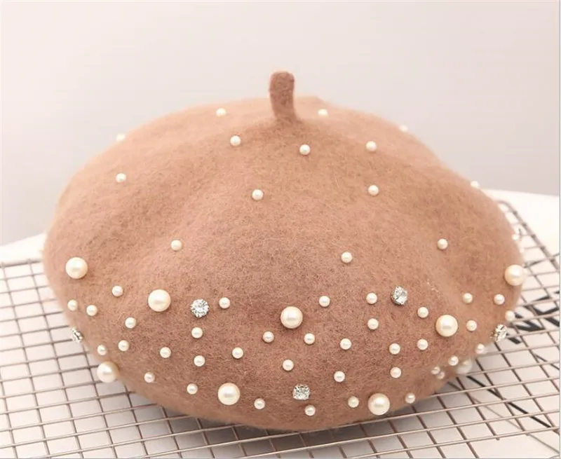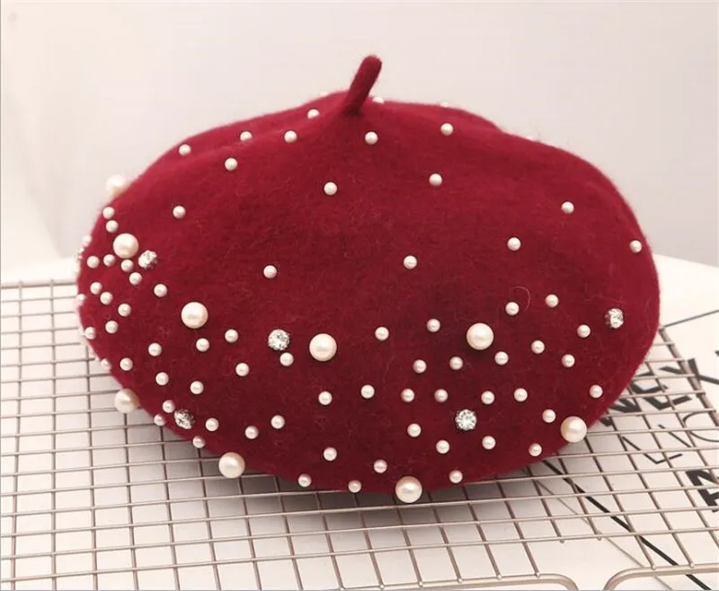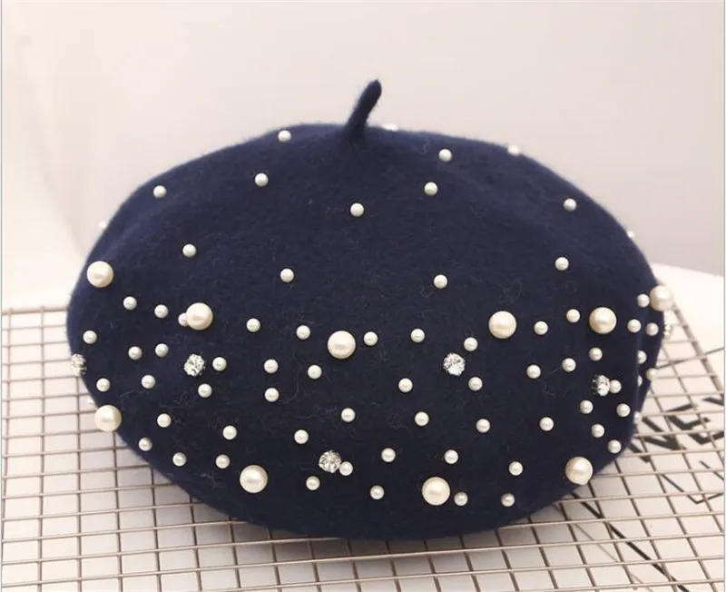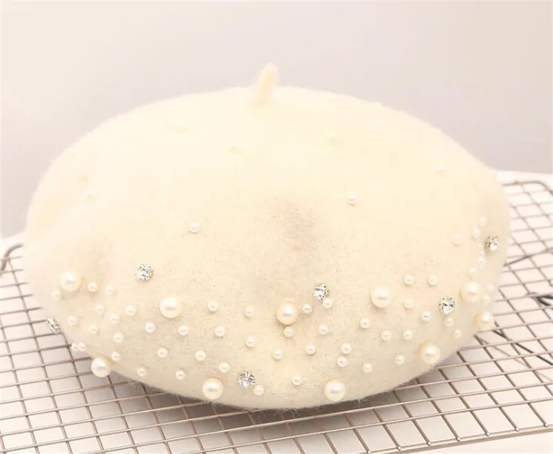 Перламутровые береты для женщин, теплые, Vogue, французские кашемировые шапки для девочек, берет из бисера B1179
