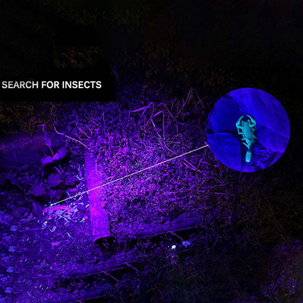 -Ультрафиолетовые фонари-это простой способ обнаружения этих опасных вредителей, идеально подходящий для наружного использования, таких как охотничьи скорпионы и минералы, днем или ночью.