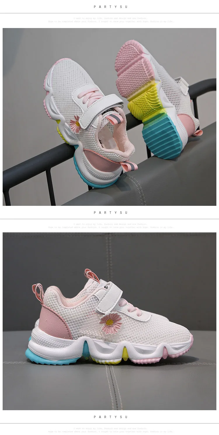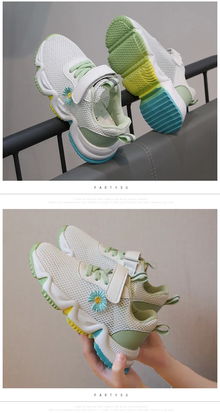 Спортивная обувь для мальчиков; Кроссовки для девочек; Кроссовки для мальчиков 2020; Сетчатые кроссовки для бега; Яркая дышащая обувь с цветочками; Детская повседневная обувь; Детская обувь