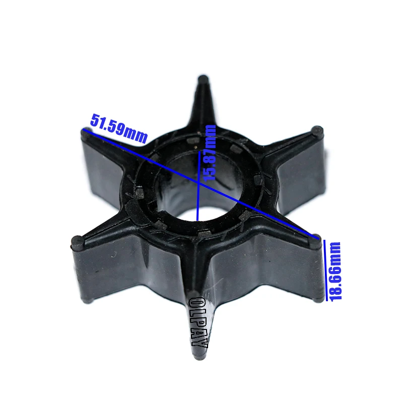 Спецификация:Количество лезвий: 6Высота: 18,66 ммВнешний крыльчатка общий диаметр: 51,59 ммВнутренний диаметр вставки вала: 15,87 ммВес нетто: 17 гПрименение:Крыльчатка водяного насоса для Yamaha 2-х тактный лодочные моторы: 25B, 25N ,25Q, 25J, алюминиевая крышка, 25В, 30D,30 ч, 30 г, 40H,40X,50DКрыльчатка водяного насоса для Yamaha 4 тактный лодочные моторы: F20A,F25A,FT25B,F25D,FT25F,F30A,F30B,F40B,F40F
