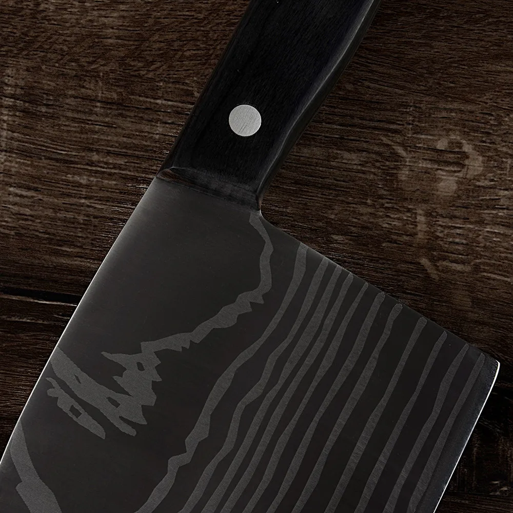 Этот нож шеф-повара мясника изготовлен из нержавеющей стали 7cr17, ручка и лезвие интегрированы без пайки, который является прочным и прочным для устранения сломанной ручки