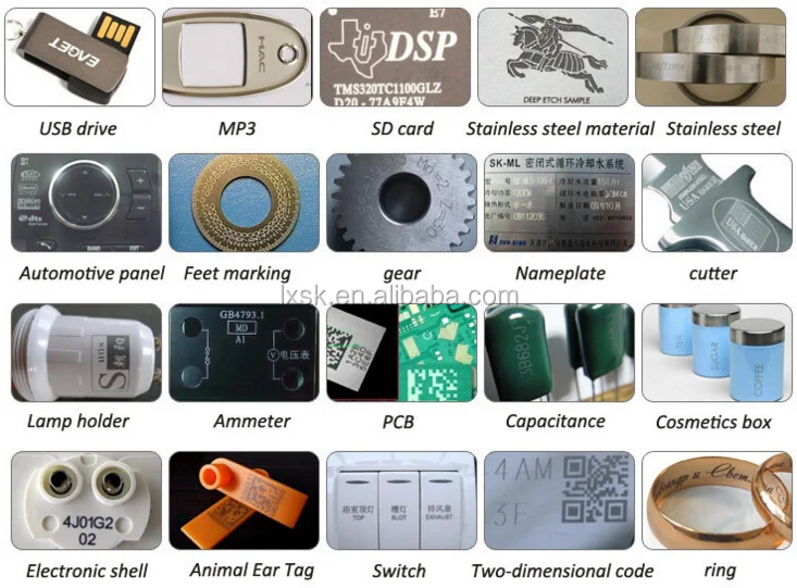 Некоторые Неметаллы и металлические материалы. Машина поддерживает широкий спектр типов маркировки
