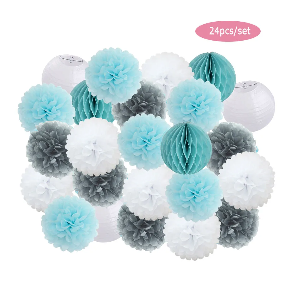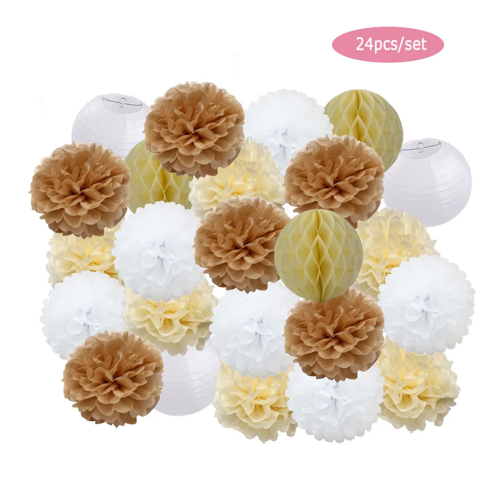 1 комплект = 3 бумажных фонаря + 3 сота + 18 бумажных помпонов