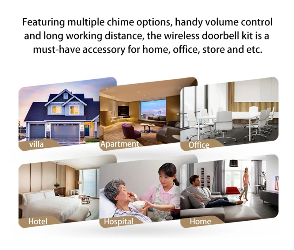 1. Нажмите кнопку, супер обучающий код может свободно научиться сочетать, может быть неограниченным подходящим приемником и кнопкой. 2. Если несколько кнопок соединены с одним или несколькими приемниками в одной системе, каждая кнопка может быть установлена на другой мелодии звонка. 3. Функция отключения памяти: Включите питание снова после выключения питания, не нужно повторно регулировать и блокировать мелодию звонка. 4. Передатчик без винтового патрона обеспечивает водонепроницаемость и защиту от пыли. 5. Передатчик использует щелочную батарею 23A12V (не входит в комплект). 6. Напряжение приемника: 110-220 В. 7. Приемник доступен в различных вилках, штепсельных вилках США/ЕС/Великобритании и адаптерах Австралии, подходит для большинства стран. 8. Расстояние приема: 300 метров на открытой местности. 9. На беспроводной сигнал будут влиять препятствия. Чем больше препятствий, тем серьезнее потеря сигнала. 10. Приемник имеет 4 уровня (можно отключить звук) 20-80 дБ, 58 музыки на выбор. 11. Размер передатчика: 77*46*20 мм 12. Размер приемника: 95*65*24 мм 13. Просто подключите приемник к электрической розетке, передатчик кнопки может быть приклеен к двери с помощью прилагаемых клейких лент. Примечание: Кнопка не может быть размещена на железной двери, потому что это будет мешать сигналу. Если приемник не звонит, когда вы нажимаете кнопку после получения дверного звонка, пожалуйста, проверьте шаги: 1. Пожалуйста, подтвердите, установлена ли кнопка щелочная батарея 23A12V. 2. Пожалуйста, повторите сопряжение дверных колоколов.