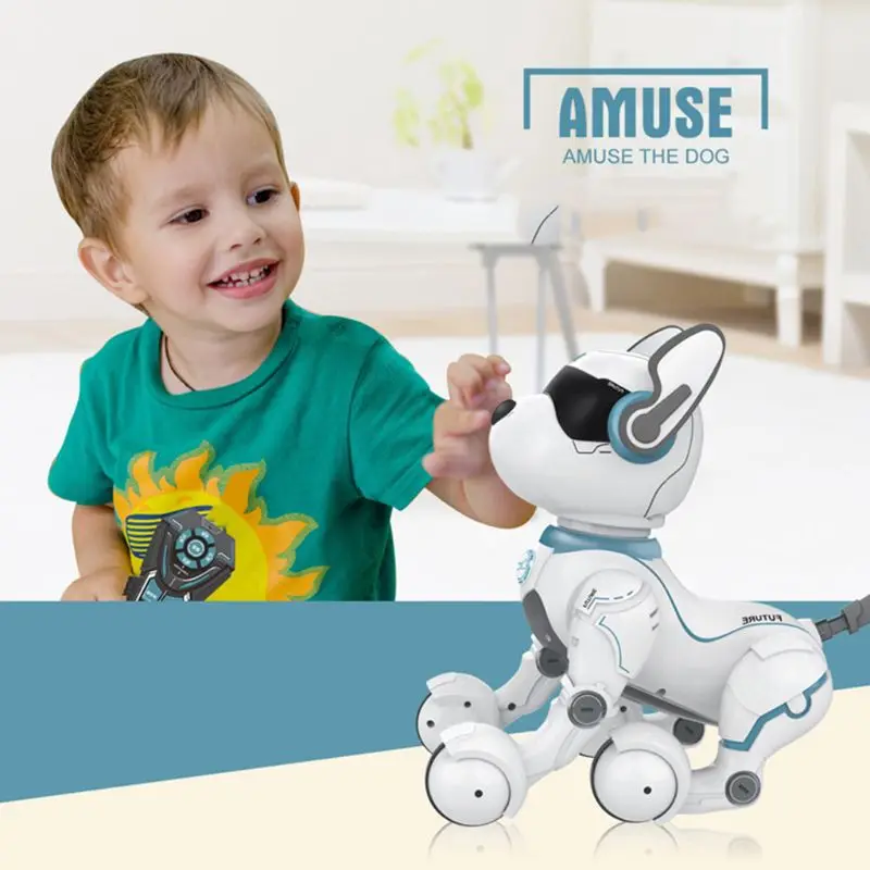 Топ гоночный Голосовое управление и пульт дистанционного управления умный робот собака личный щенок, робот для детей в возрасте 3, 4, 5, 6, 7, 8, 9 и выше.