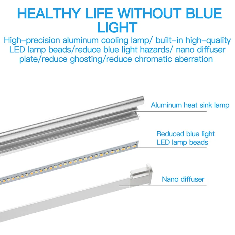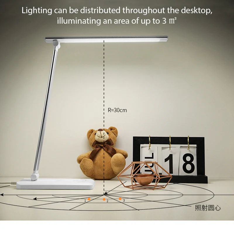 1. 5 режимов освещения и 5 яркостей: Эта настольная лампа с сенсорным управлением спроектирована с 5 уникальными лампами (6500-3000K) с 5 индивидуальными уровнями яркости, 52 светодиода обеспечивают дальность освещения 3 квадратных метра, идеально подходят для работы, учебы, чтения или отдыха.