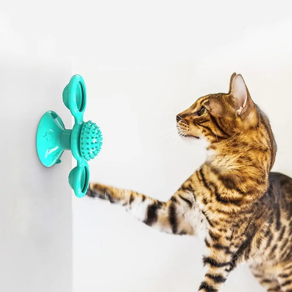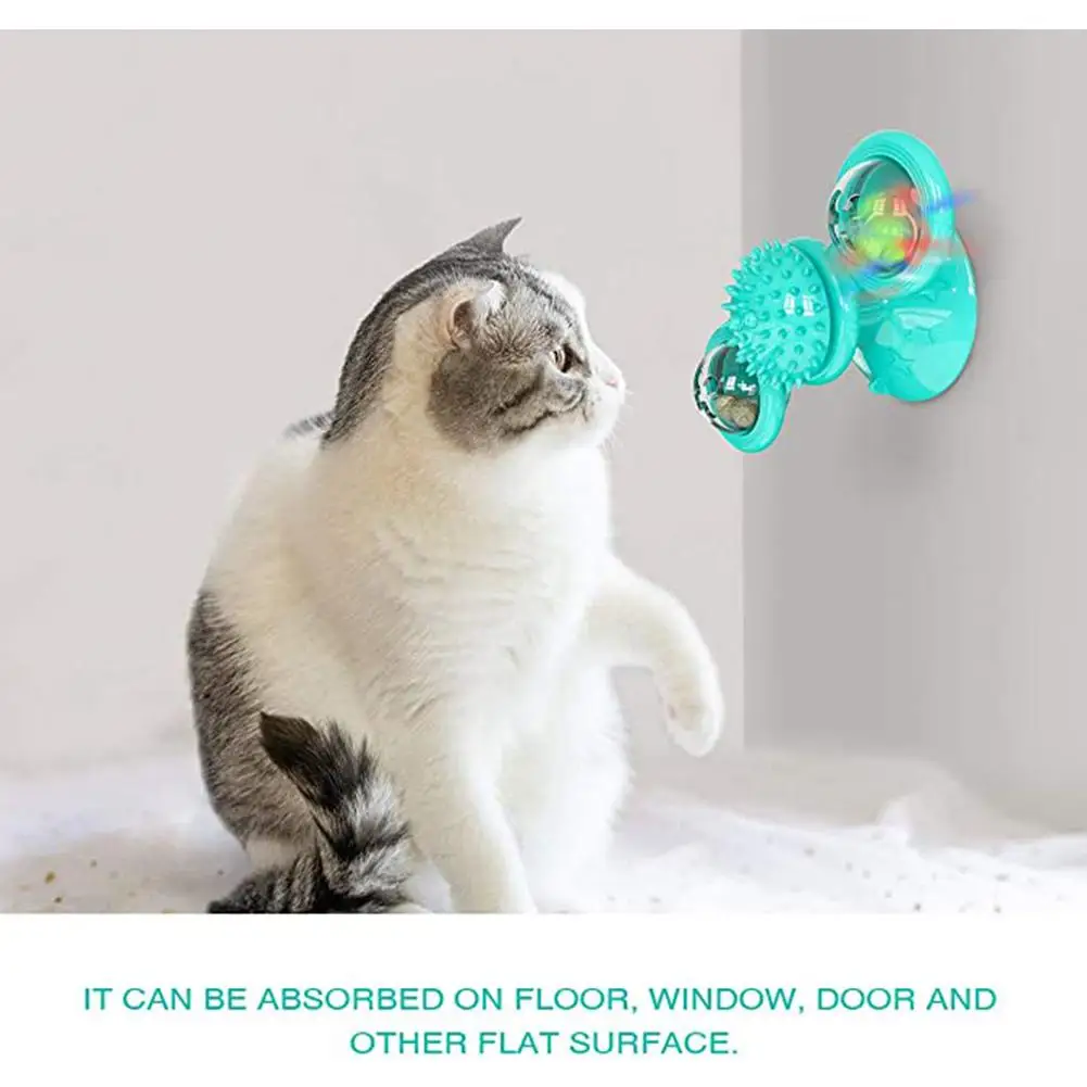На круглых лезвиях ветряной мельницы есть две прозрачные пластиковые коробки. Вы можете разместить светильник с шариками и кошачьими шариками для привлечения кошек. (включая) игрушка для животных с ветряной мельницей также может играть после того, как снимите крышку коробки