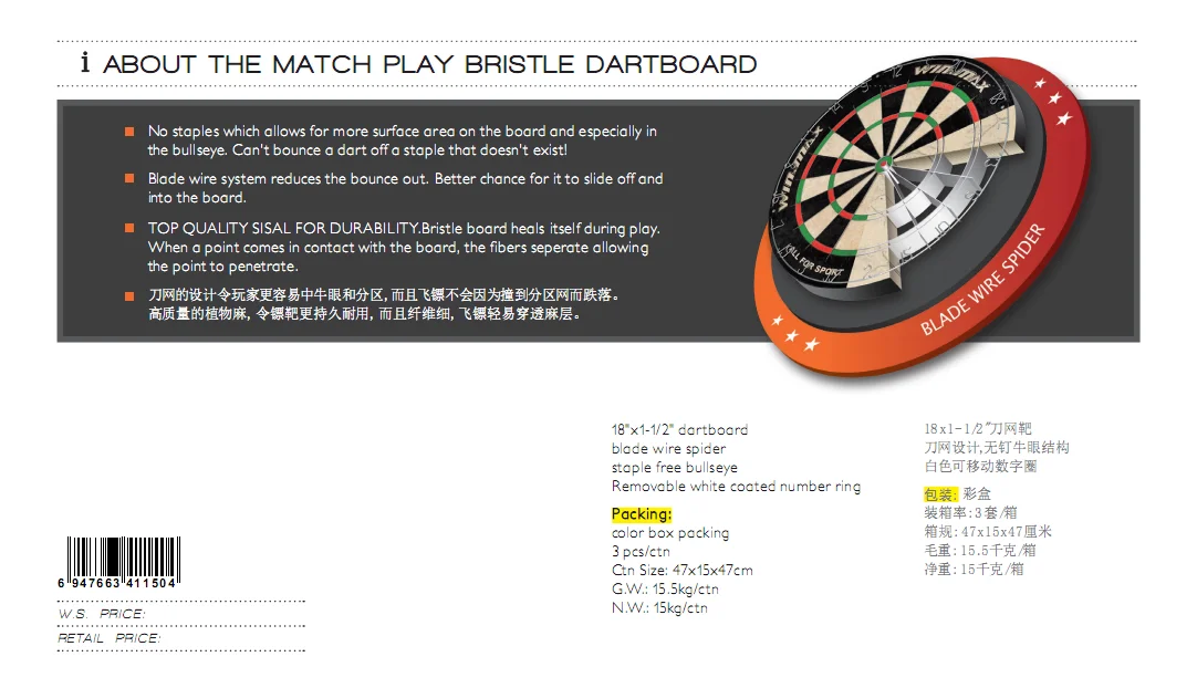 18X1-1/2 ''профессиональный набор дартс дизайн шкафа мишень со щетиной лезвие провода