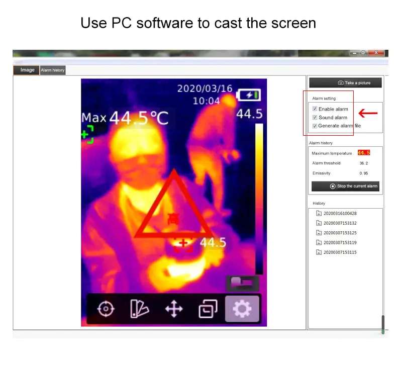 Примечание: 165 ч не может работать с компьютером; 165K работает с компьютером; Инфракрасный Тепловизор 30 ˚ C ~ 45 ˚ C в режиме реального времени с проекцией тепловизор камера обнаружения температуры, быстро обнаруживает высокую температуру, если у кого-то есть жар, температура превышает 37,3 градусов Цельсия, это будет сигнал тревоги. Его можно широко использовать на фабрике, в школе, на станции, в общественных местах. Основные функции 1. Язык: английский/китайский (легко работать) 2. 2,8 "TFT экран 3. Инфракрасное Разрешение: 160 × 120 4. Частота кадров: 9 Гц 5. Диапазон измерения температуры: 30 ˚C ~ 45 ˚C 6. Точность: ± 0,5 ˚C 7. Функция фотографирования и хранение sd-карт 8. Анализ программного обеспечения ПК 9. Измерение точечной температуры 10. Интерфейс USB Type-C для зарядки литиевых аккумуляторов Монтажное отверстие для штатива 11,1/4"