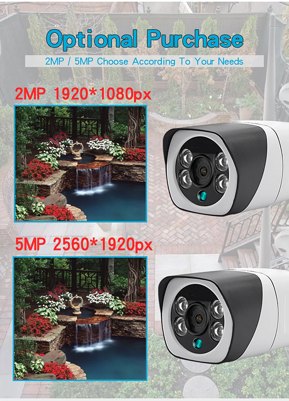 5MP (32GB 2A Power) = 5MP + блок питания 12V2A + 32GB sd-карта5MP ( 64GB 2A Power) = 5MP + блок питания 12V2A + 64GB sd-картаУличная WIFI камера Full HD 1080P 5MP