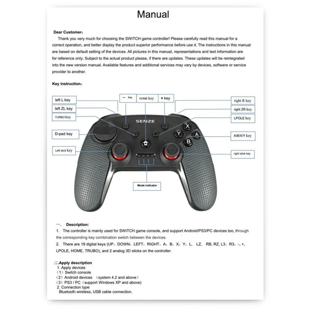 ◆ Для переключателя ручки Bluetooth, версия Bluetooth 2,1 + Совместимость с ПК/PS3 / Android / X-Входная функция