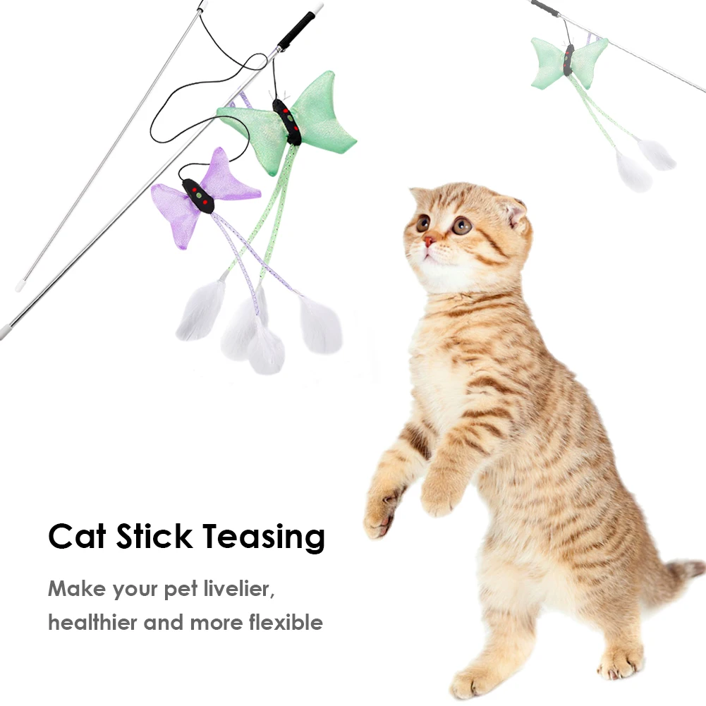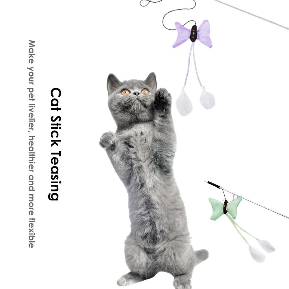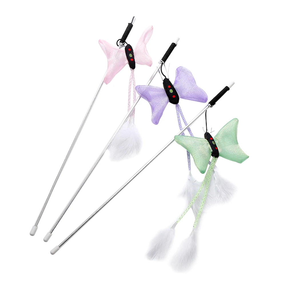 Палочка для кошки с тикающей бабочкой из газовой трубки, элегантная и гибкая.