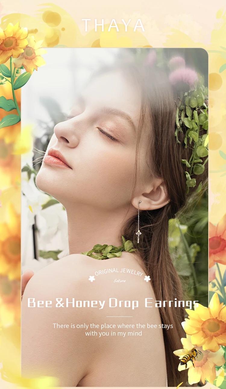 Thaya, 100% Настоящее серебро 925 пробы, серьги, оригинал, Пчела и мед, висячие серьги, хорошее ювелирное изделие, серьги-гвоздики для женщин, подарок