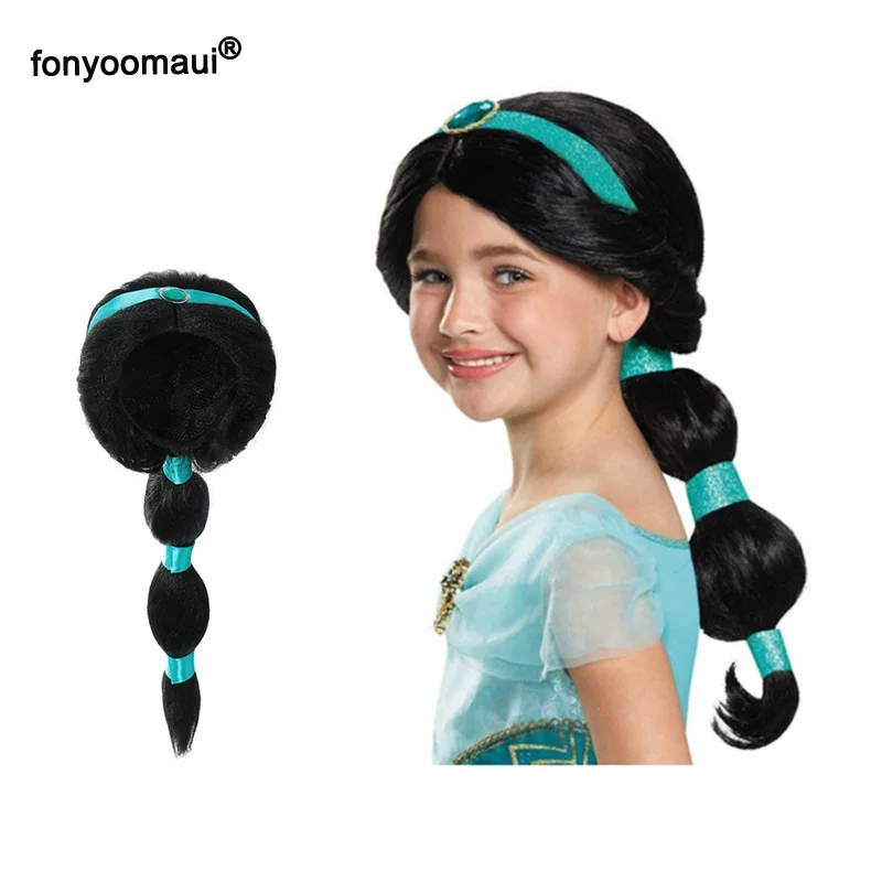 Детский парик для девочек, косплей, жасмин Аладдин, принцесса, парик, волосы для детей, для Хэллоуина, вечерние, маскарадные наряды, костюм, реквизит, подарок